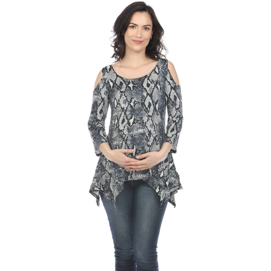 White Mark Maternity Snake Print Cold Shoulder Tunic