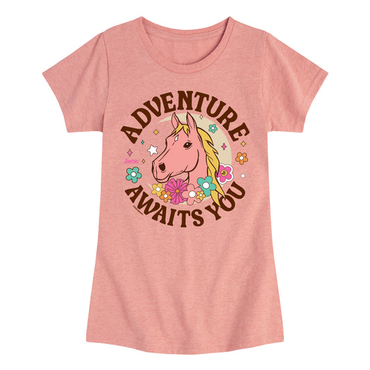 Barbie - Adventure Awaits You - Girls Fitted Short Sleeve Graphic T-Shirt
