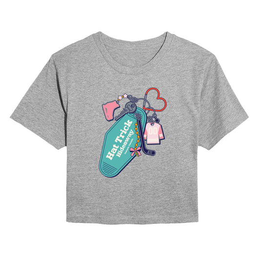 Instant Message - Hockey Keychain - Juniors Cropped Graphic T-Shirt