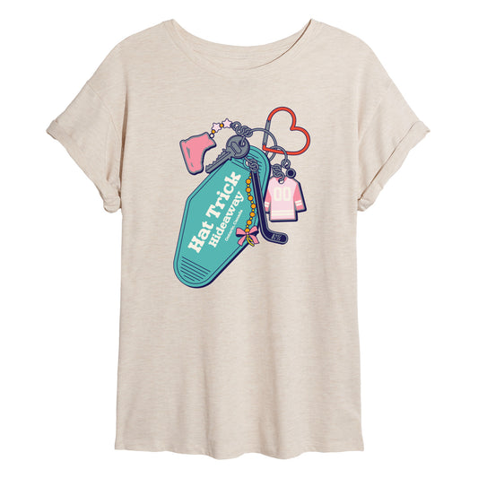 Instant Message - Hockey Keychain - Juniors Oversized Graphic T-Shirt