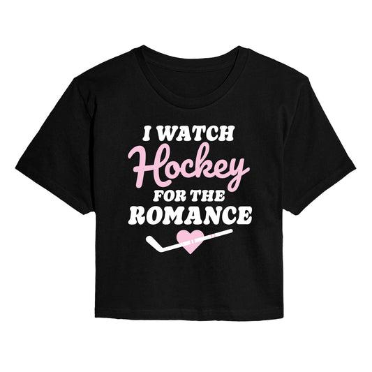 Instant Message - Watch Hockey for the Romance - Juniors Cropped Graphic T-Shirt