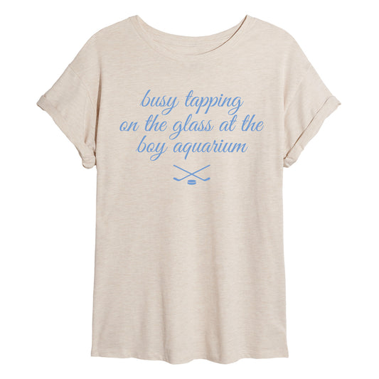 Instant Message - Tapping Glass Boy Aquarium Blue - Juniors Oversized Graphic T-Shirt