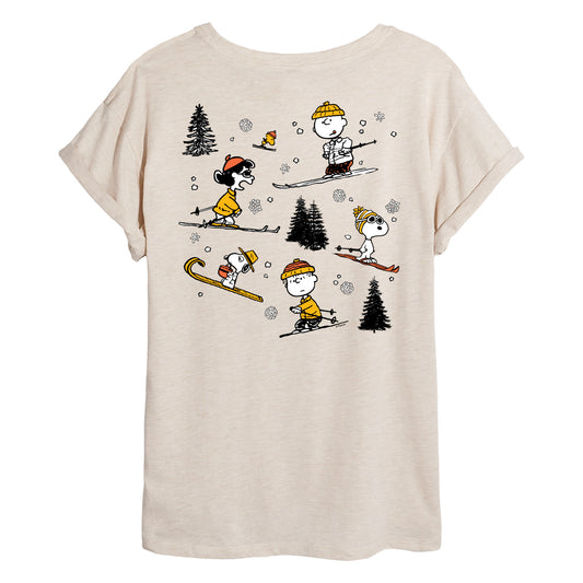 Peanuts - Peanuts Skiing - Juniors Oversized Graphic T-Shirt
