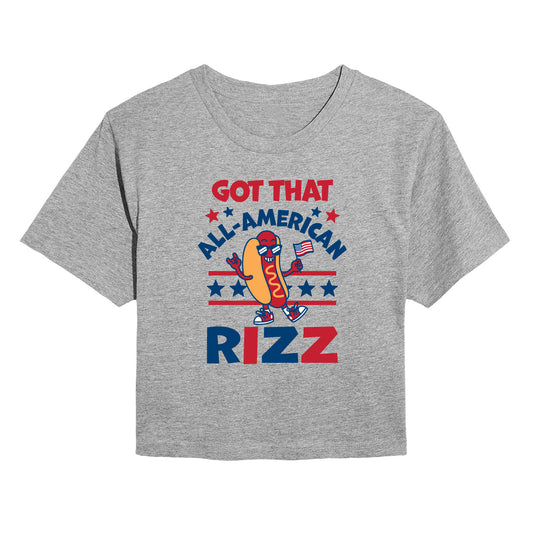 Instant Message - All American Rizz Hotdog - Juniors Cropped Graphic T-Shirt