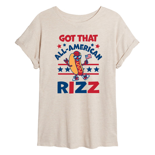 Instant Message - All American Rizz Hotdog - Juniors Oversized Graphic T-Shirt