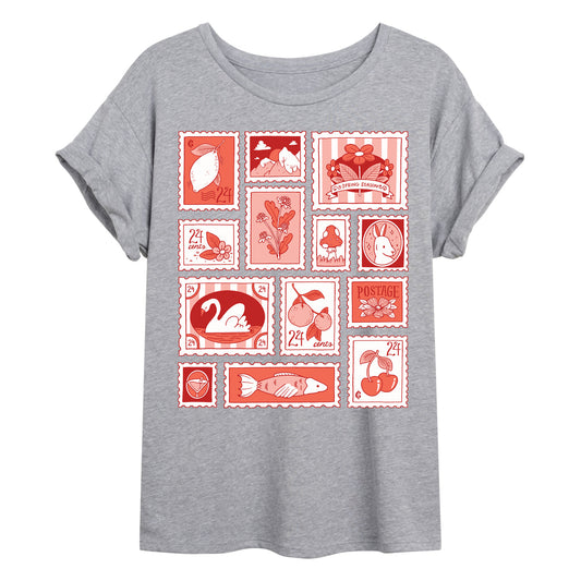 Instant Message - Vintage Stamp Grid - Juniors Oversized Graphic T-Shirt