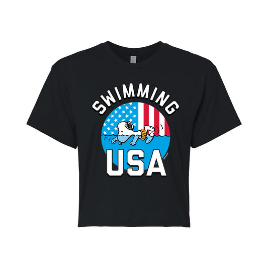 Peanuts - USA Swimming - Juniors Cropped Graphic T-Shirt