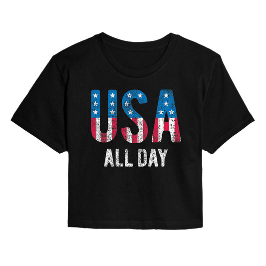 Instant Message - USA All Day Flag Fill - Juniors Cropped Graphic T-Shirt