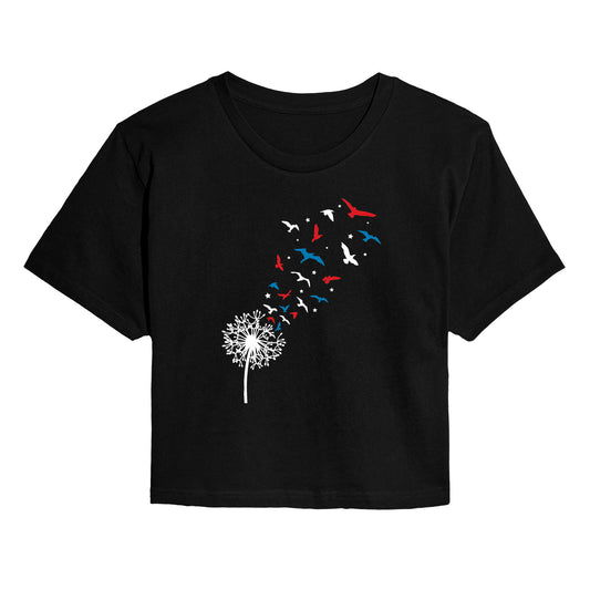 Instant Message - Patriotic Dandelion Birds - Juniors Cropped Graphic T-Shirt
