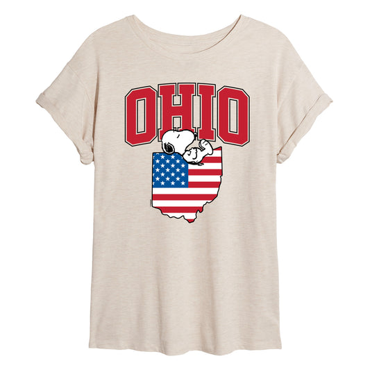 Peanuts - Ohio Snoopy - Juniors Oversized Graphic T-Shirt