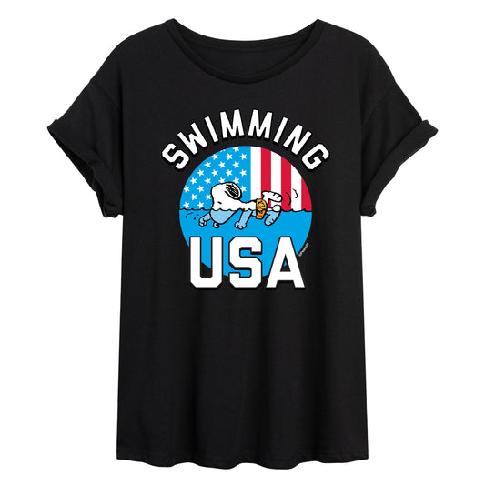 Peanuts - USA Swimming - Juniors Oversized Graphic T-Shirt