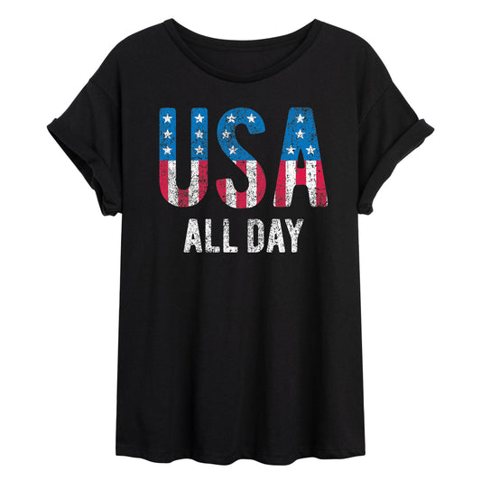 Instant Message - USA All Day Flag Fill - Juniors Oversized Graphic T-Shirt