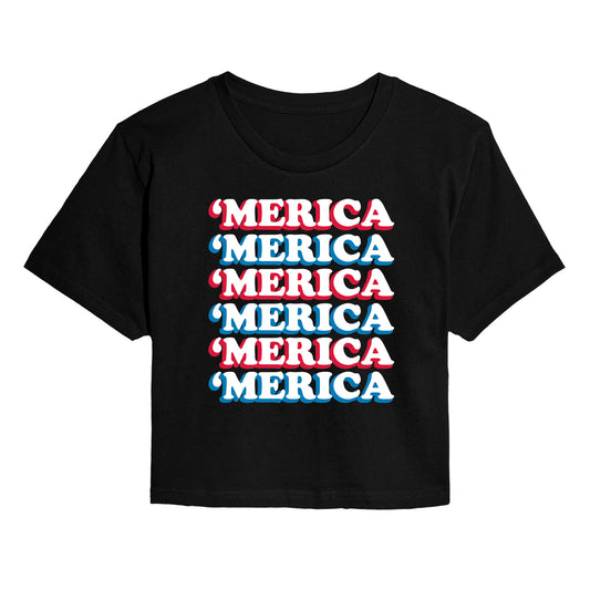 Instant Message - 'Merica Stacked - Juniors Cropped Graphic T-Shirt