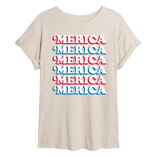 Instant Message - 'Merica Stacked - Juniors Oversized Graphic T-Shirt