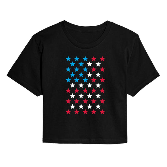 Instant Message - USA Flag Stars - Juniors Cropped Graphic T-Shirt