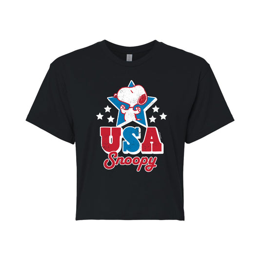 Peanuts - USA Snoopy - Juniors Cropped Graphic T-Shirt