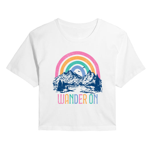 Instant Message - Wander On Mountain - Juniors Cropped Graphic T-Shirt