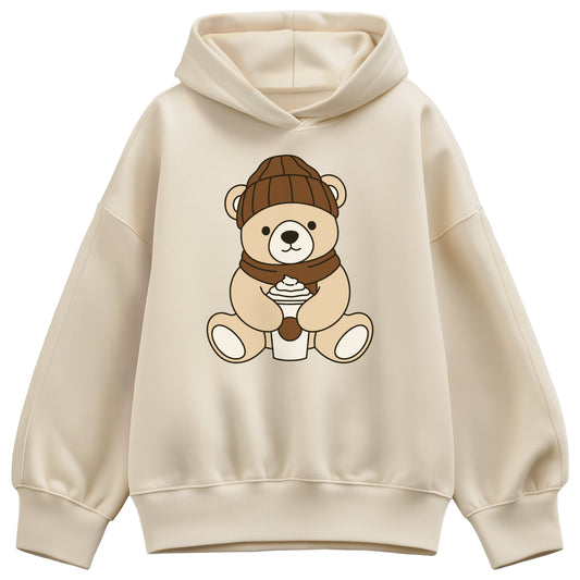 Instant Message - Coffee Bear - Ladies Oversized Fleece Hoodie Sweatshirt