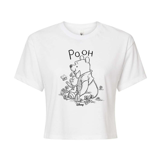 Disney - Pooh And Piglet - Juniors Cropped Cotton Blend T-Shirt