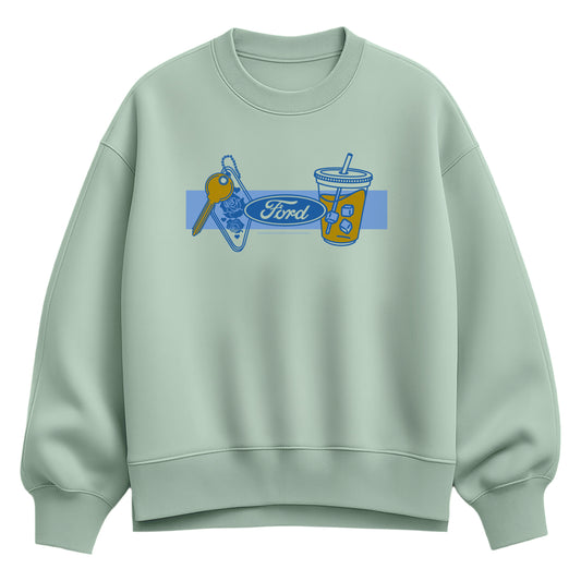 Ford - Coffee and Keychain - Women's Oversized Fleece Crew Sweatshirt