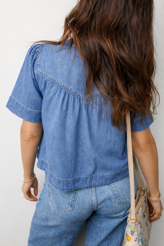 Threaded Pear Skylar Flower Lace-up Babydoll Blouse