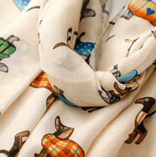 Playful and Adorable Dachshund Scarf in Beige