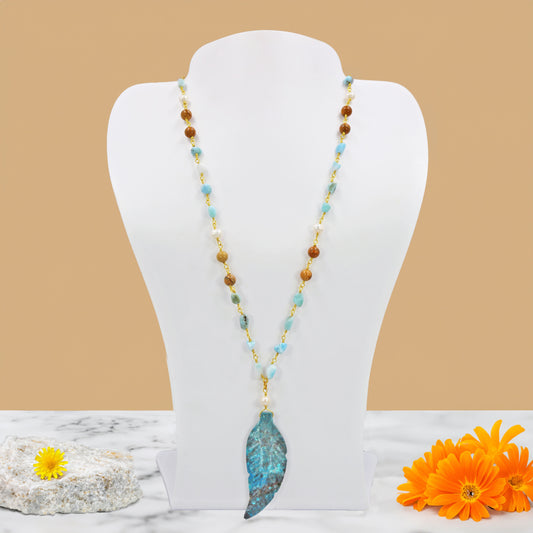 MGR Women's Larimar & Jasper Beaded Necklace with Hand-Carved Feather Pendant
