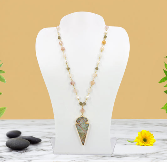 MGR Women's Rosary Style Necklace with Sunstone, Labradorite, Cultured Pearls & Arrowhead Jasper Pendant