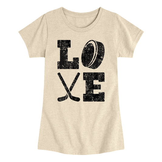 Instant Message - Love Hockey - Youth Girls Fitted Short Sleeve T-Shirt