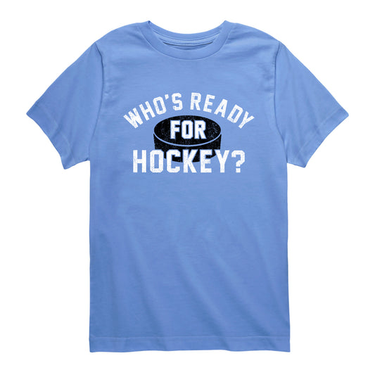 Instant Message - Who's Ready For Hockey - Youth Boys Short Sleeve Graphic T-Shirt