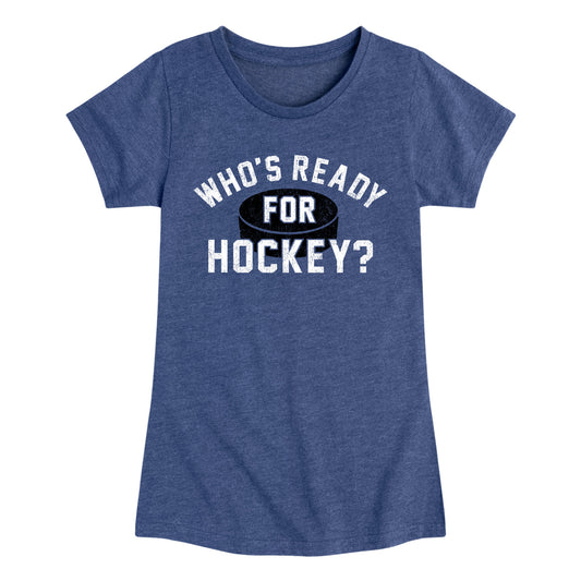 Instant Message - Who's Ready For Hockey - Youth Girls Fitted Short Sleeve T-Shirt