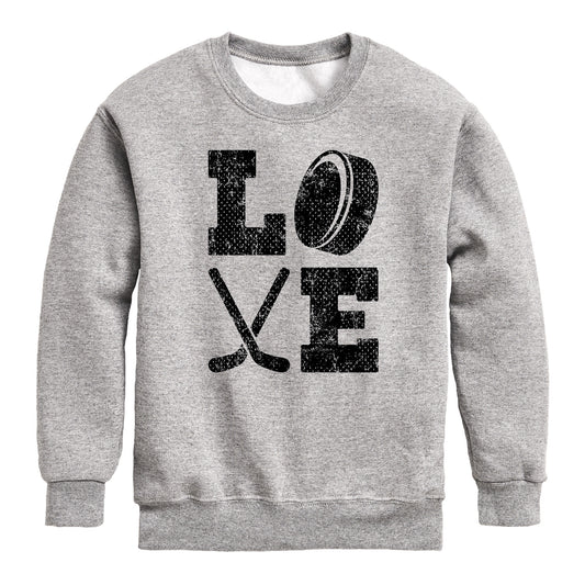 Instant Message - Love Hockey - Youth Boys Crew Fleece Sweatshirt