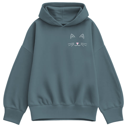 Instant Message - Cat Face - Women's Oversized Fleece Hoodie Sweatshirt