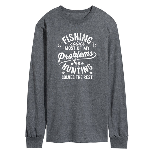 Instant Message - Fishing Solves Most Problems - Men's Long Sleeve Graphic T-Shirt