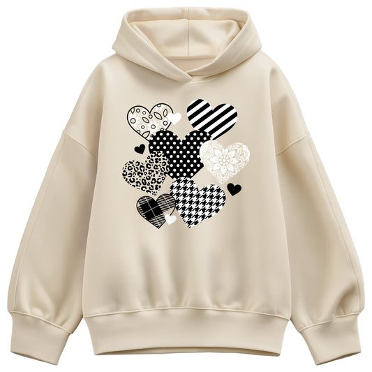 Instant Message - Patterned Hearts - Women's Oversized Fleece Hoodie Sweatshirt