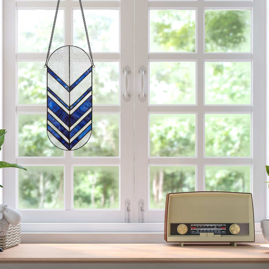 River of Goods 14" L Geometric Abstract Stained Glass Window Panel