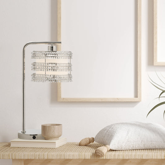 River of Goods Silver Table Lamp with Decorative Shade and USB
