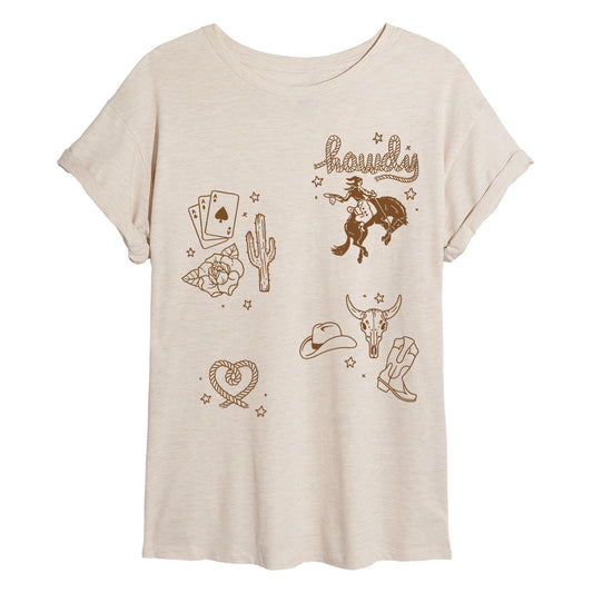 Instant Message - Howdy Cowboy - Juniors Oversized Graphic T-Shirt