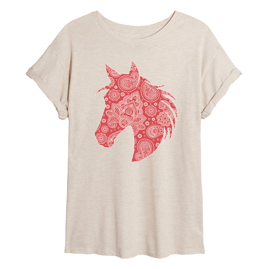 Instant Message - Paisley Horse Head - Juniors Oversized Graphic T-Shirt