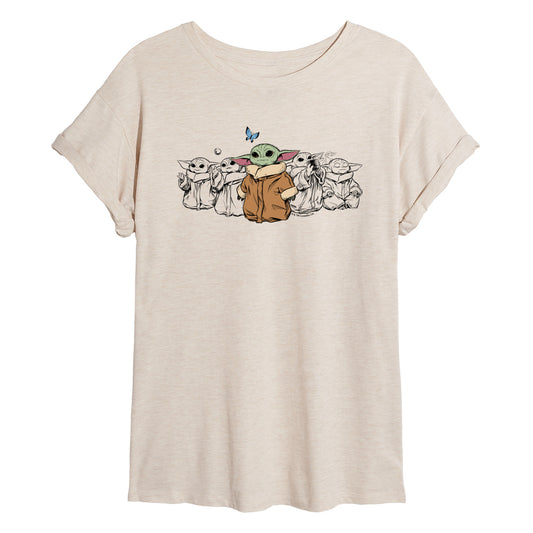 The Mandalorian - Grogu Multi - Juniors Oversized Graphic T-Shirt