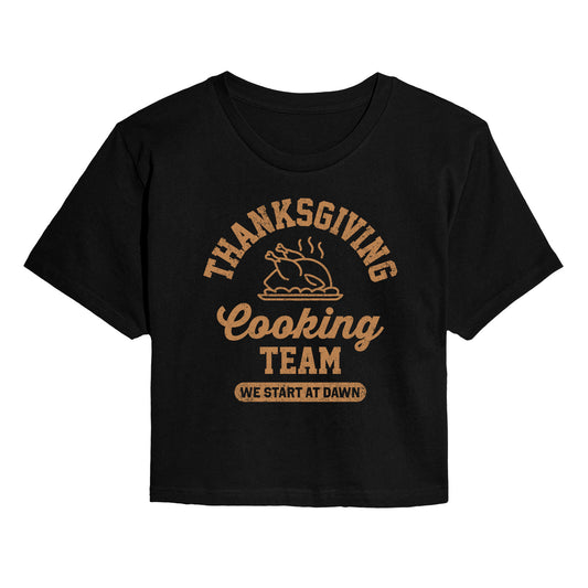 Instant Message - Thanksgiving Cooking Team - Juniors Cropped Short Sleeve Graphic T-shirt