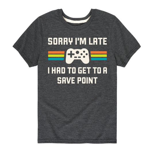 Instant Message - Sorry Im Late Save Point - Youth Short Sleeve Graphic T-shirt