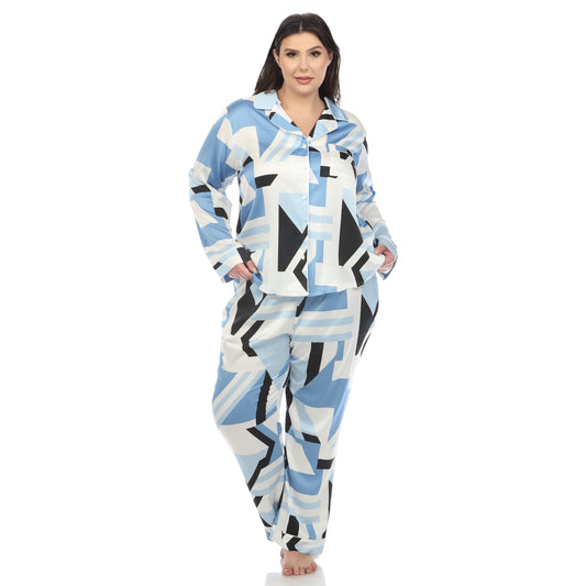 White Mark Women's Plus Size Printed Satin Pajama Set