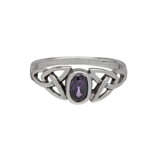 Amethyst & Sterling Silver Oval Celtic Ring
