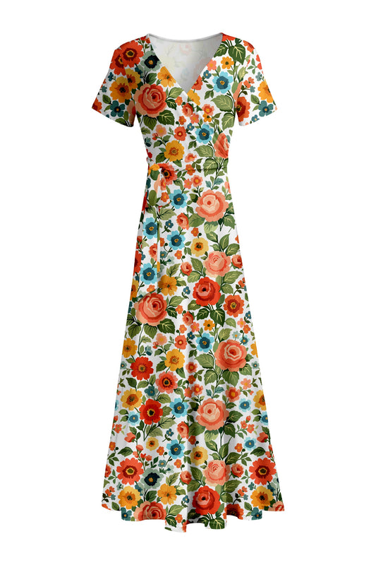Lily by Firmiana Short Sleeve Wrap-Style Maxi Dress With Waist Tie