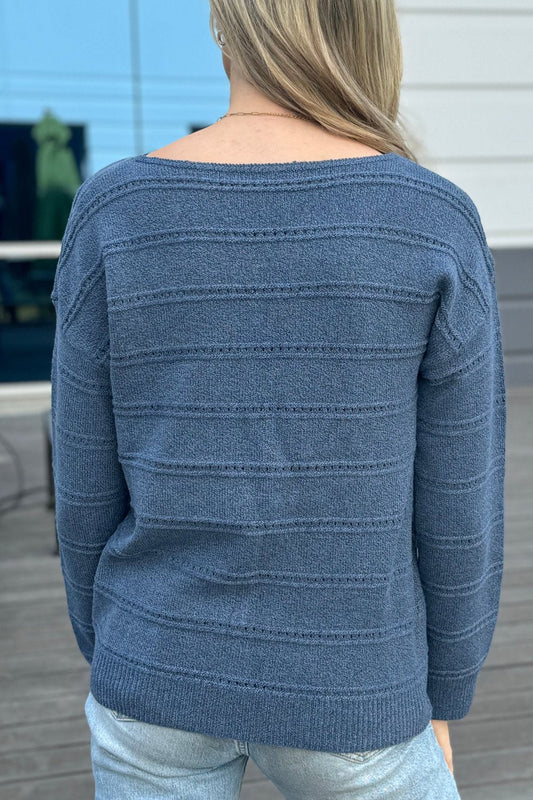 Sophia Striped Ribbed Trim Sweater by Threaded Pear