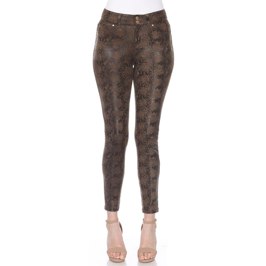 White Mark Women's Faux Suede Snake Print Pants