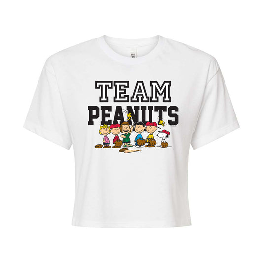 Peanuts - Baseball Team - Juniors Cropped Graphic T-Shirt