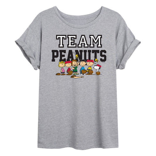 Peanuts - Baseball Team - Juniors Oversized Graphic T-Shirt