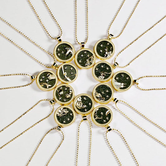 Crystal & 18K Goldtone Plated Zodiac Circular Set of 2 Pendant Necklaces - Libra